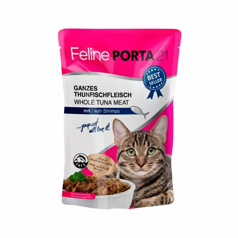 La comida húmeda Porta 21 es un ALIMENTO COMPLEMENTARIO para gatos de cualquier tamaño y edad. Elaborados con ingredientes de la mejor calidad apto para el consumo humano. ¡Sin cereales!