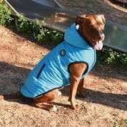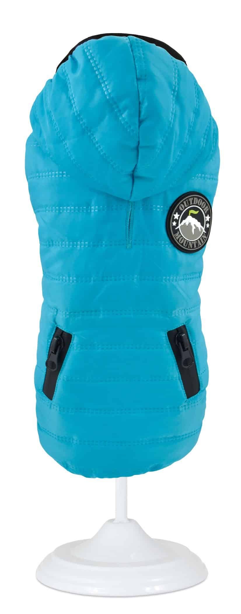 Chaqueta Casual color Turquesa, con capucha que se fija con un corchete para que no se vaya hacia a delante. Interior de forro polar para guardar mejor la temperatura, Con elástico para sujetar en el rabo.