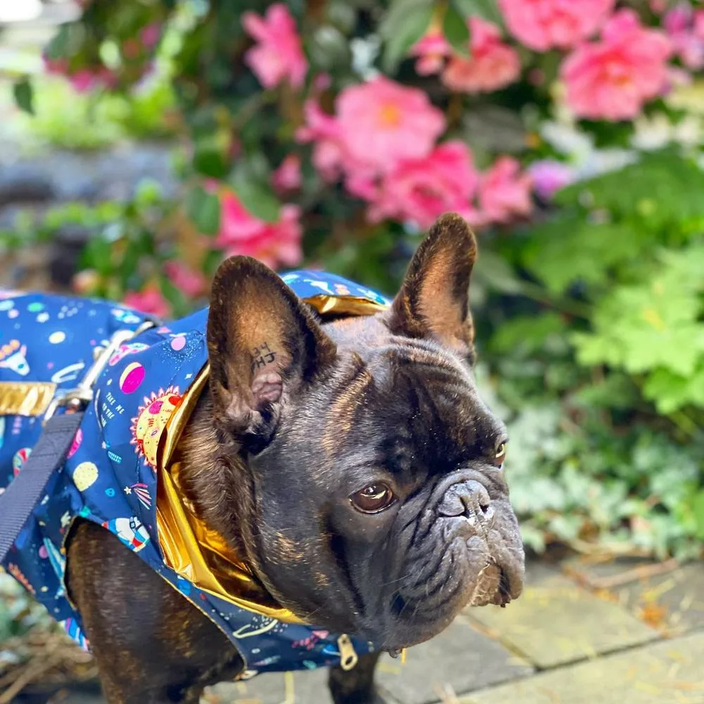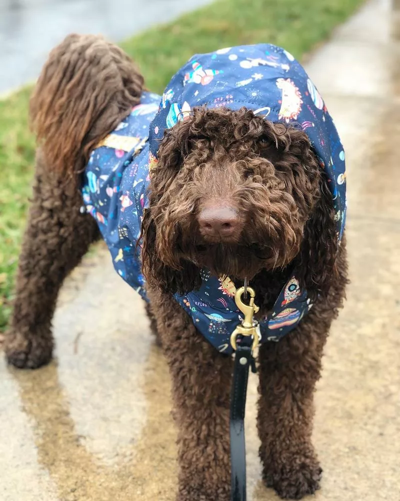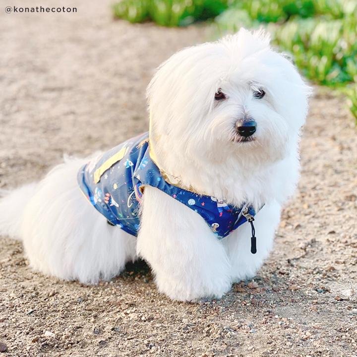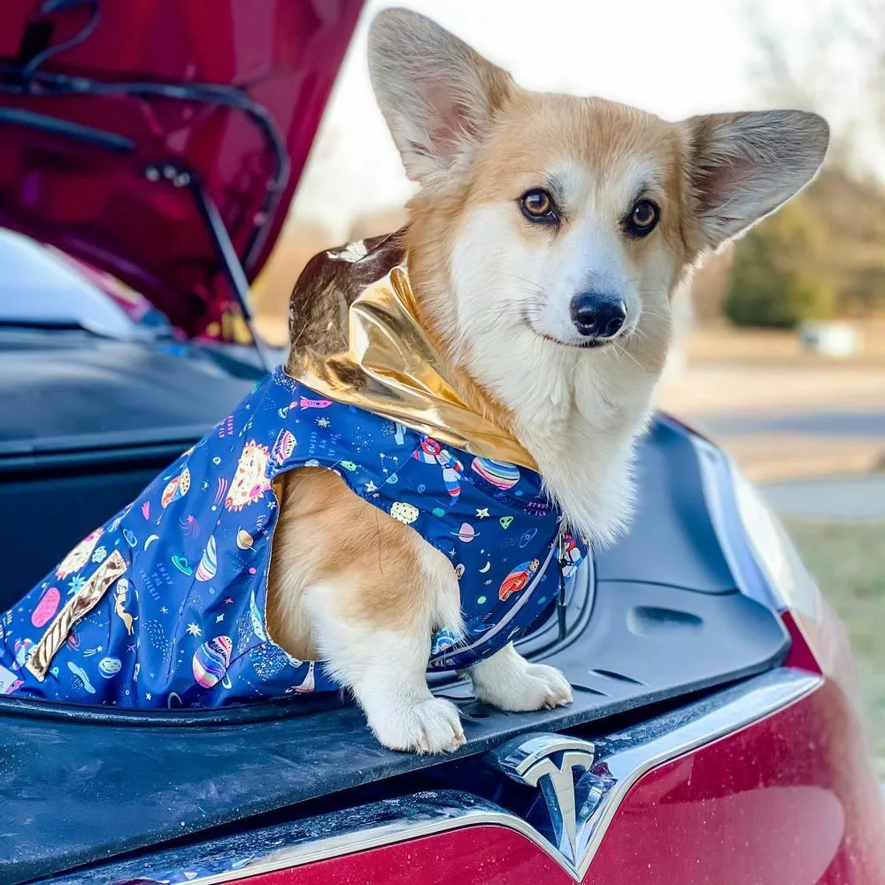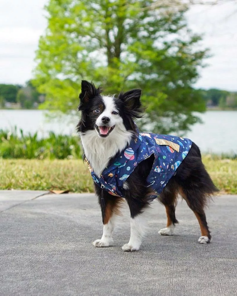 • Reversible: Por un lado es un chubasquero Dorado muy galáctico y por el otro es un divertido impermeable de planetas y naves espaciales