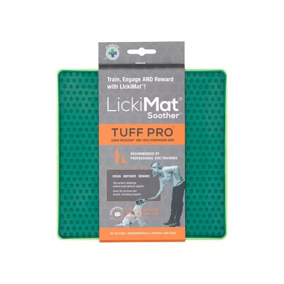 LickiMat shooter tuff, es una esterilla de látex con una textura de puntitos en relieve que te permite untar comida para que tu mascota la vaya sacando con cada lametón. La versión Tuff esta diseñada con una carcasa exterior más dura que la clásica shooter, en consecuencia la textura es más rígida para nuestros perros