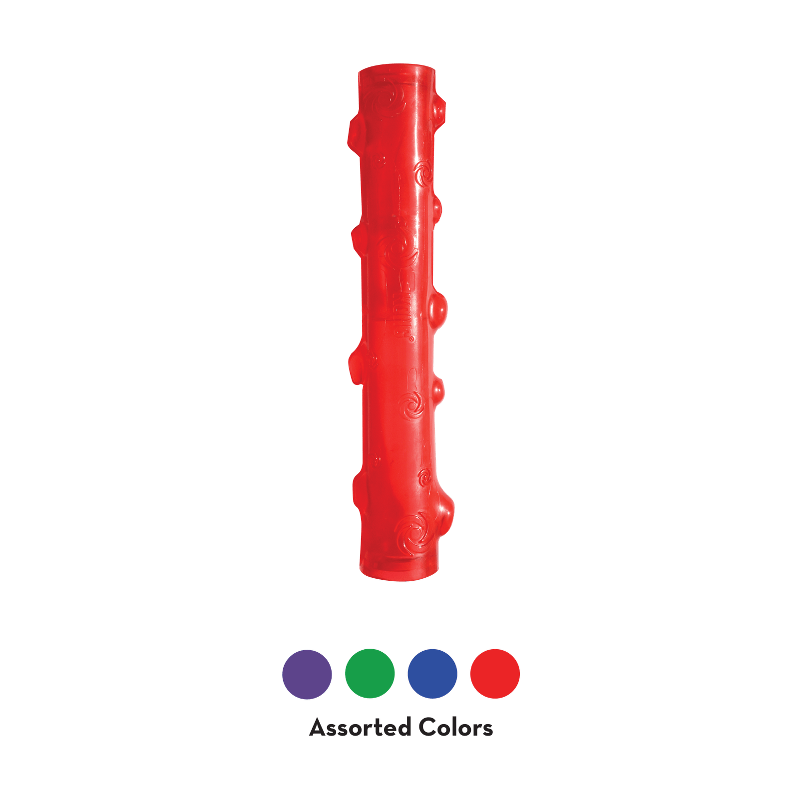 Juguete en forma de stick que tiene un squeaker dentro que pita cuando lo aprieta el perro, el pitido es infinito ya que aunque el material se pinche seguirá pitando. Sirve para jugar al tira y afloja, para lanzarlo y cómo mordedor ya que tiene algunas protuberancias para que se masajee las encías al morder.