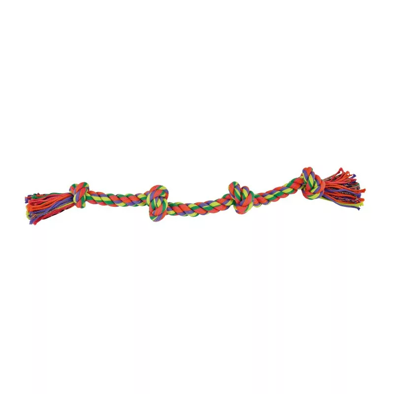 Cuerda dental compuesto por hilos entrelazados en su interior que incrementan su resistencia y durabilidad. Ideal para juegos de lanzar, recoger, tirar y aflojar. Ayudará la higiene dental de su mascota así como el fortalecimiento de sus mandíbulas.