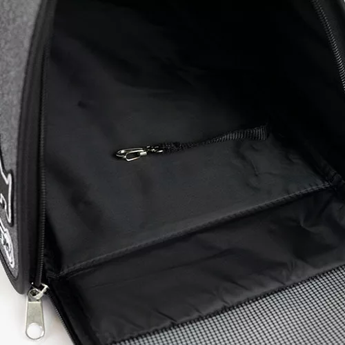 Ambos laterales disponen de ventanas con rejilla, y una de ellas se puede dejar abierta por medio de un cierre magnético, para que su mascota pueda ir con la cabeza fuera y observar a su alrededor. Dispone de un bolsillo lateral para poder guardar la correa, o cualquier otro accesorio.