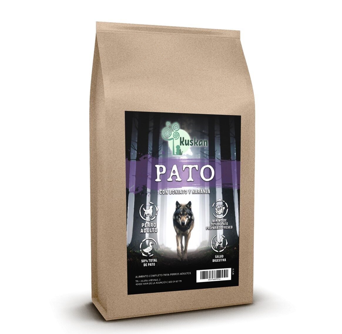 COMPOSICIÓN: Pato 50% (Incluyendo Pato Preparado Fresco 28%, Pato Deshidratado 20% y Caldo de Pato 2%), Boniato (26%),