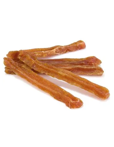 COMPOSICIÓN: Carne de pollo 91%, Proteinas vegetales 2,5%, Glicerina 3,3%, Sorbitol 3%, Sal 0,2%.