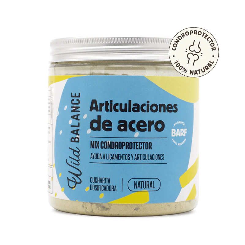 ARTICULACIONES DE ACERO es un condroprotector natural para perros y gatos que ayuda a mejorar la salud de sus articulaciones y ligamentos. Es muy importante usar este suplemento a modo de prevención cuando nuestros peludos ya tienen una edad o si tienen tendencia a padecer alguna enfermedad que afecta a las articulaciones.