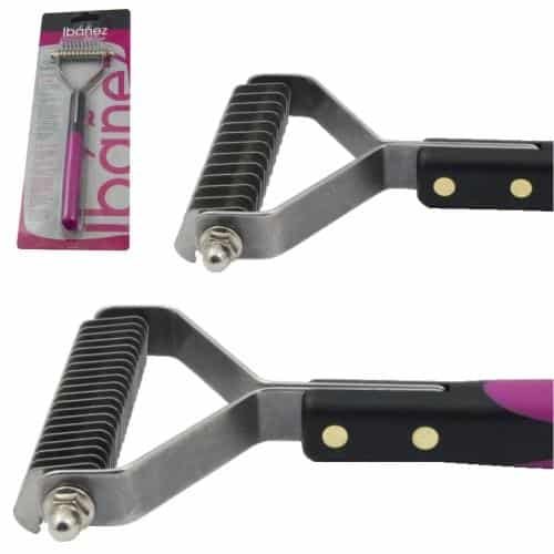 Eliminia el subpelo. Para rebajar volumen en razas de doble capa, abrir el pelo muy denso y cortar nudos pequeños.