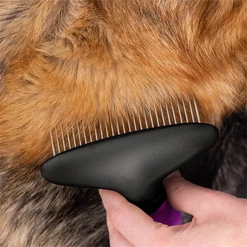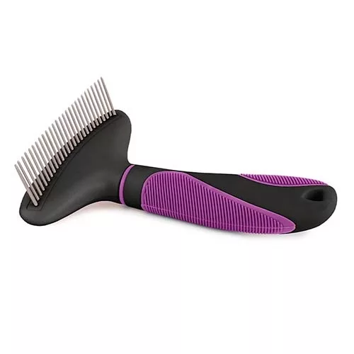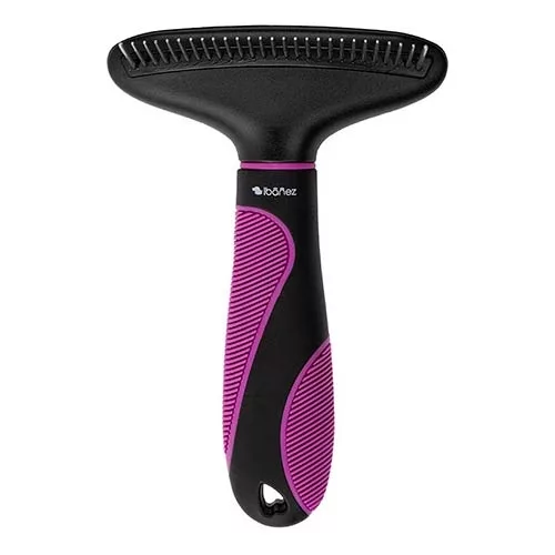 El rastrillo Ibáñez de púas largas es una herramienta ideal para el deslanado de perros con capas dobles que experimentan mudas intensas. Extrae de manera efectiva el pelo muerto, incluso en mantos largos y densos con abundante subpelo, ayudando a reducir la cantidad de pelo suelto en la mascota y, por ende, en el hogar, el automóvil y los muebles. Además, este rastrillo ayuda a restaurar el brillo y los colores en mantos apagados y sin vida, dejando el pelaje de tu mascota con un aspecto saludable y bien cuidado.